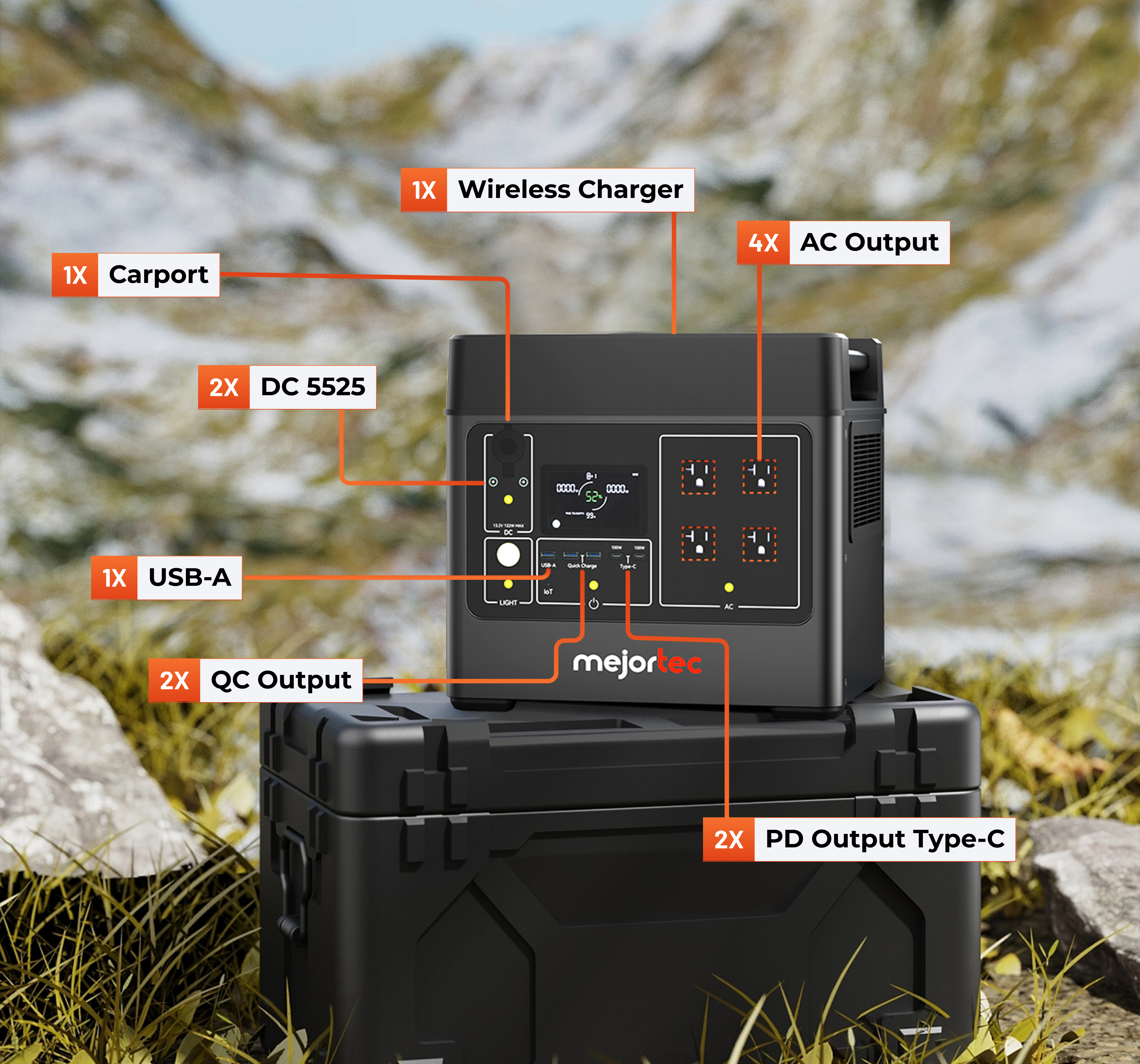 - Versatile Power Outputs – AC, DC, USB-A, USB-C, and wireless charging.